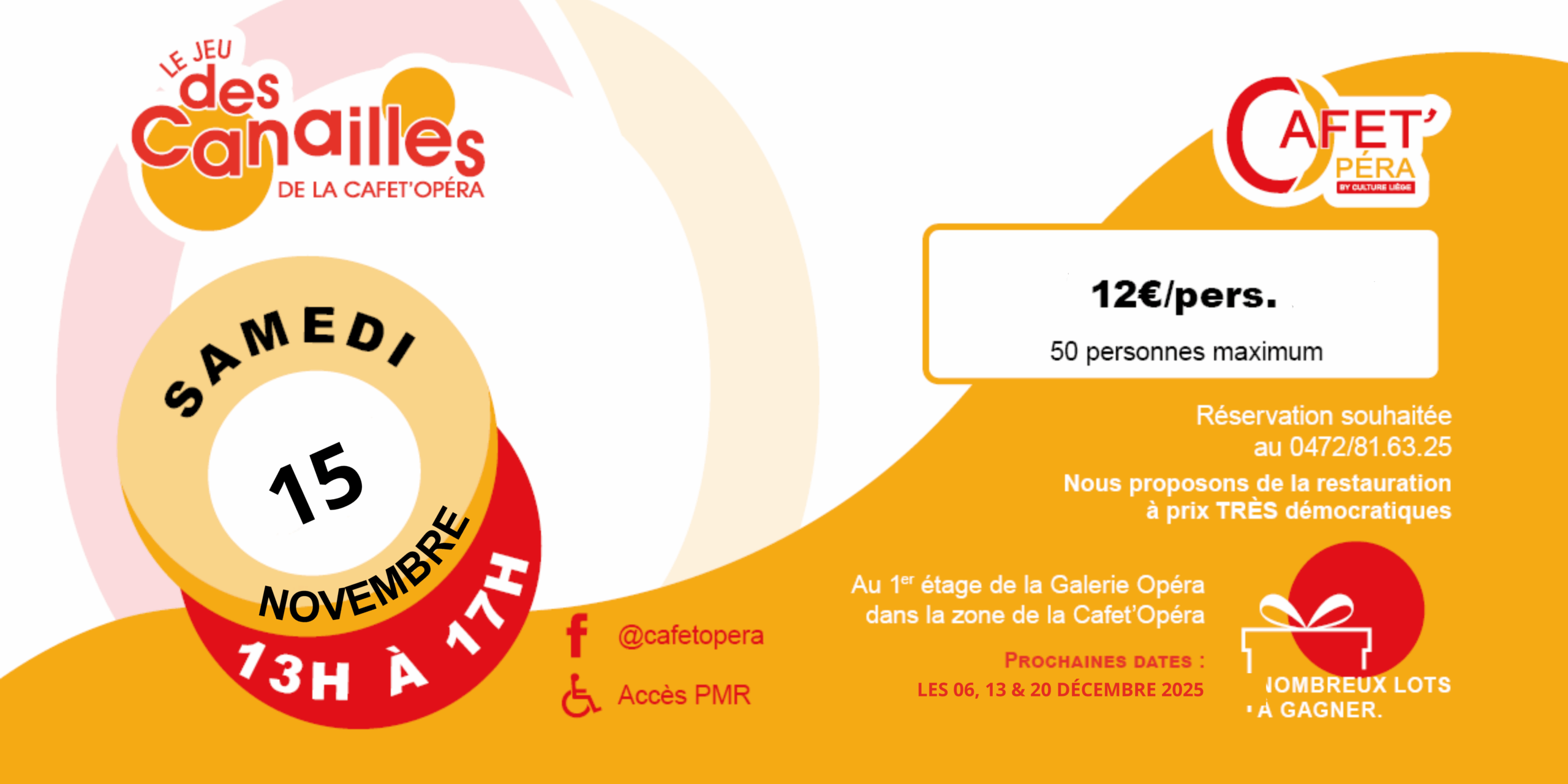 Venez vous amuser et nous retrouver ce Samedi 15 Novembre 2025 à partir de 13h pour une belle après-midi et ainsi pouvoir découvrir notre belle Cafétéria sociale à la Cafet Opera.